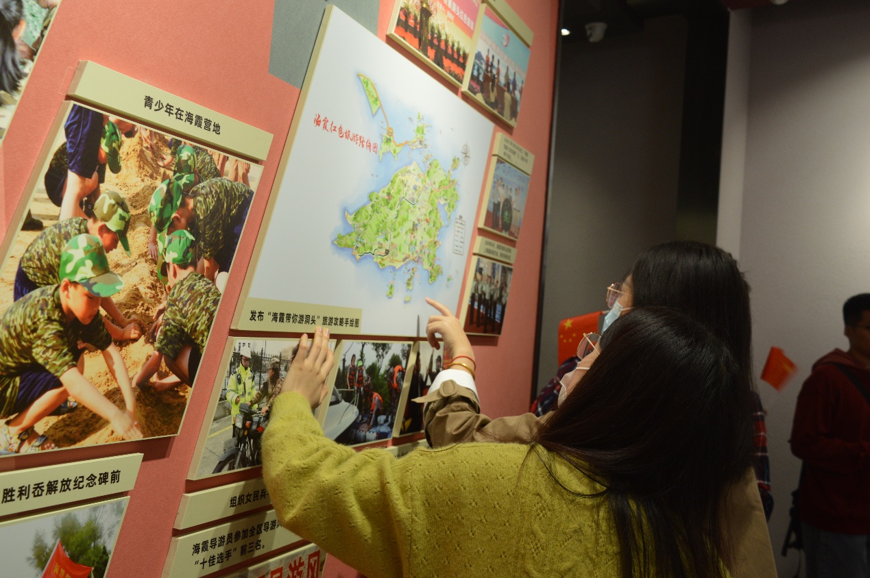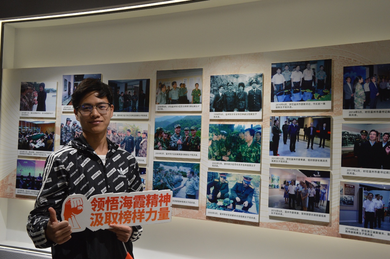 各展厅中触动最深的当属“霞出东方”展览馆,在这里我们看到了女子民兵连从诞生到壮大的辛苦发展历程。1960年6月,最早的北沙女子民兵连成立,由汪月霞担任连长。“谁说女子不如男”,女民兵以超人的毅力开展了超负荷、超常人的工作,在生产发展、国防施工、防敌防特和建设国防等方面做出了突出贡献,真正展示了巾帼不让须眉的风采。在新时代背景下,海霞精神依旧激励着洞头人民不断前行,海霞品牌、海霞商标、海霞社团遍布各个行业,更有多个家庭出现了三代女民兵,不断演绎着“爱岛尚武、励志奉献”的“海霞精神”,将永远激励我们这些社会主义的接班人勇往直前。