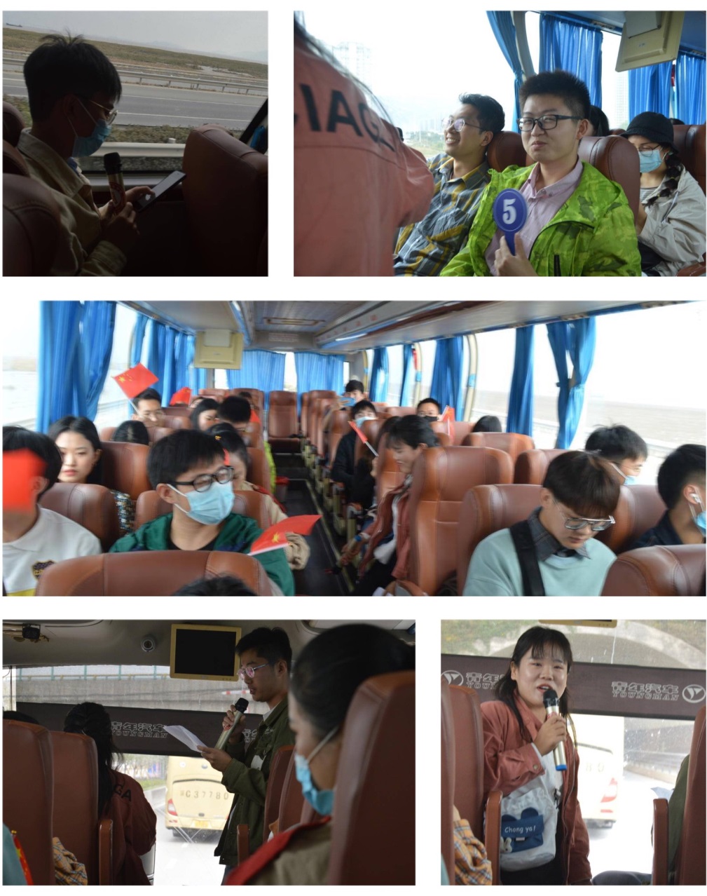 研究生支部联合研究生会组织策划了“提字接歌”和“我爱记歌词”环节,用歌声唱响青春,用青春放飞梦想。最后,同学们在车上合唱了《我和我的祖国》,开启了本次红色之旅。