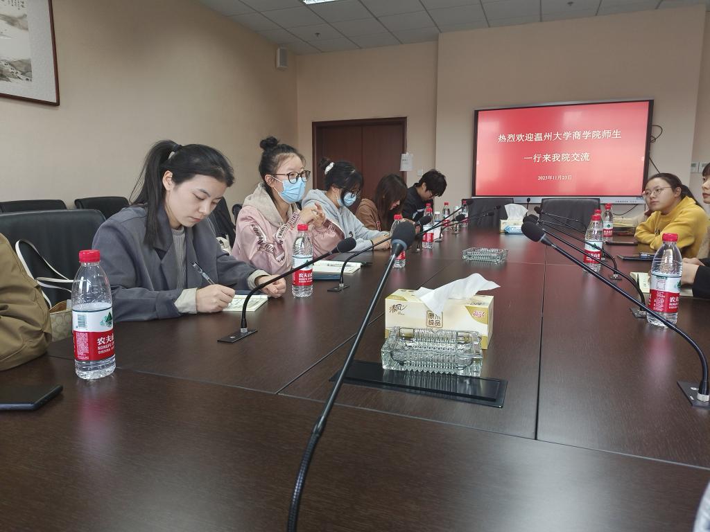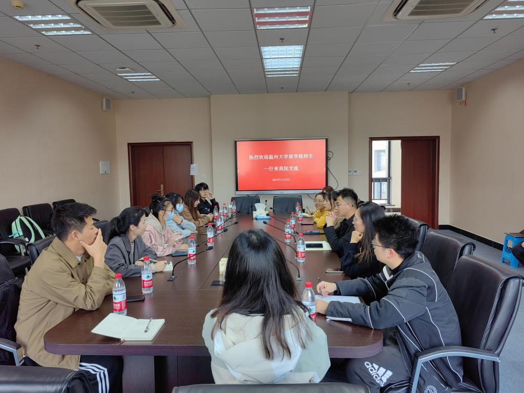 为了加强学院学生组织建设,更好地搭建好学院联系学生的桥梁和纽带,2023年11月23日15时,我院研会王景欣老师、学生科辅导员聂海燕、团学指导老师张春洋带领院研会主席团成员、党服中心主任,本科生团学主席团成员一行来到杭州电子科技大学信息工程学院学习交流。杭州电子科技大学信息工程学院经济学院党总支副书记王德超、团委书记石婷婷、辅导员江乐、辅导员周学和本科团学主席参加本次活动。会议过程双方围绕着如何开展学生工作、党建发展、团学架构建设、展开学习讨论并分享各自工作经验。