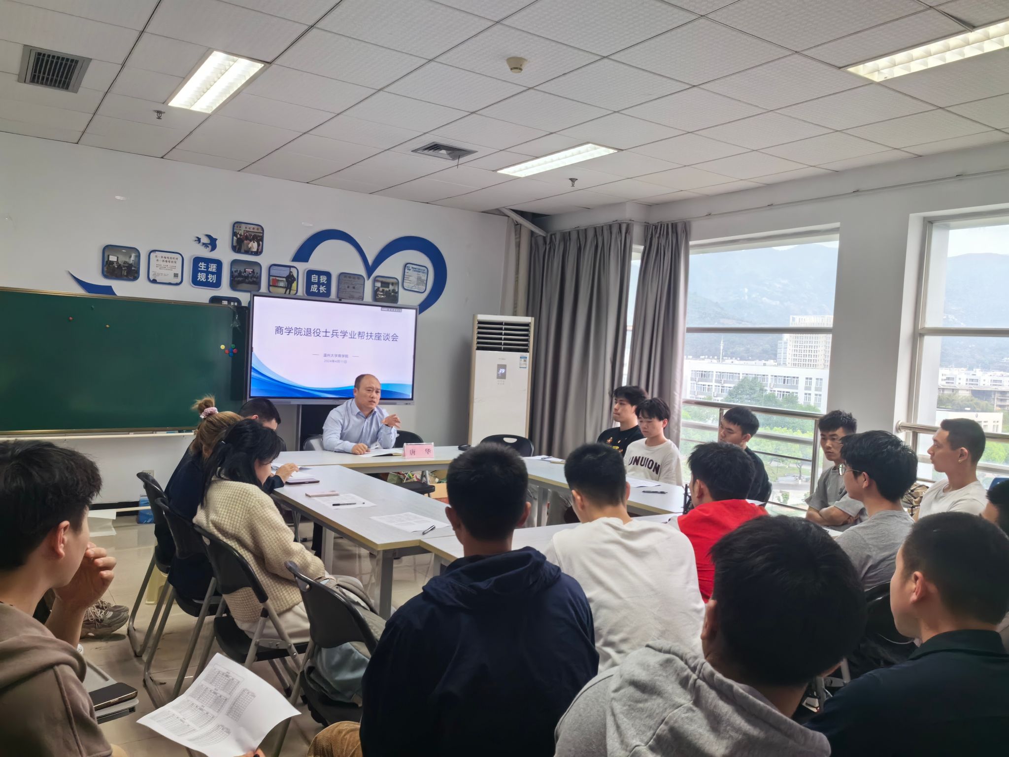 最后唐书记勉励大家珍惜军人荣誉,传承军队作风在校园生活中汇聚、传播正能量,同时希望学生科各位老师能够继续做好退役大学生士兵的关心帮扶工作,助力同学们更好融入校园,发挥退役大学生士兵的榜样示范作用,组织好国防教育宣讲活动,展现温大“戎耀青年”风采。鼓励退役大学生勇于直面困难和挑战,努力提升专业素养和能力,使自己学有所得、学有所获;做好未来规划,继续努力前行。