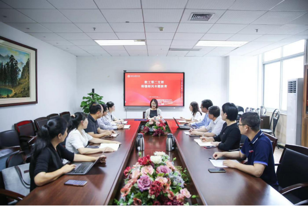 教工第二支部在北校区商学楼A222会议室开展师德师风专题教育活动,会议由支部书记陈文芝老师主持,支部全体党员及国贸系全体教师参加。