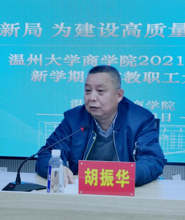 院长胡振华首先祝各位教职工牛年好,对去年学院在不平凡的年份里取得优异的成绩向大家付出的努力表示感谢,然后结合谢树华书记、赵敏校长在温州大学2021年春季新学期全体教职工大会上的讲话精神和新澳门六合彩资料